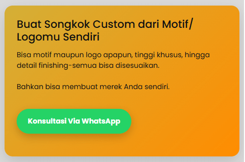 Songkok custom memberi ruang personalisasi: bahan, ukuran, logo, hingga kemasan.